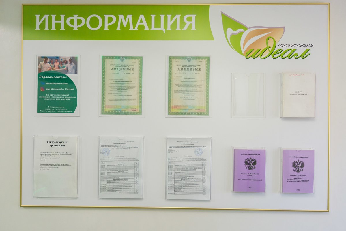 Очень благодарна врачам стоматологии Идеал. За их отношение к людям, за доброту и человечность. За подробную консультацию. С помощью их оборудования на экране я могла видеть то, что видит врач. Мы обговорили этапы лечения, определи, что можно сделать сейчас, а что позднее. Лечение одного из зубов видимо было сложным потому, что я сама затянула и до этого очень давно не была у стоматолога (то времени не было, то просто не знала куда пойти и какому врачу можно доверять). В момент лечения этого зуба я чувствовала ощущение заботы от врача и желание спасти зуб. Только в тот момент сама поняла, на сколько это важно. Но сидя в кресле не переживала, так как знала, что в надежных руках. После первого же похода в Идеал пропала боязнь врачей, развеялись все мифы и появилось чувство уверенности и доверия. Доверия к людям, к медицине и ощущение, что есть хорошие врачи!! От всей души хочу сказать вам СПАСИБО!