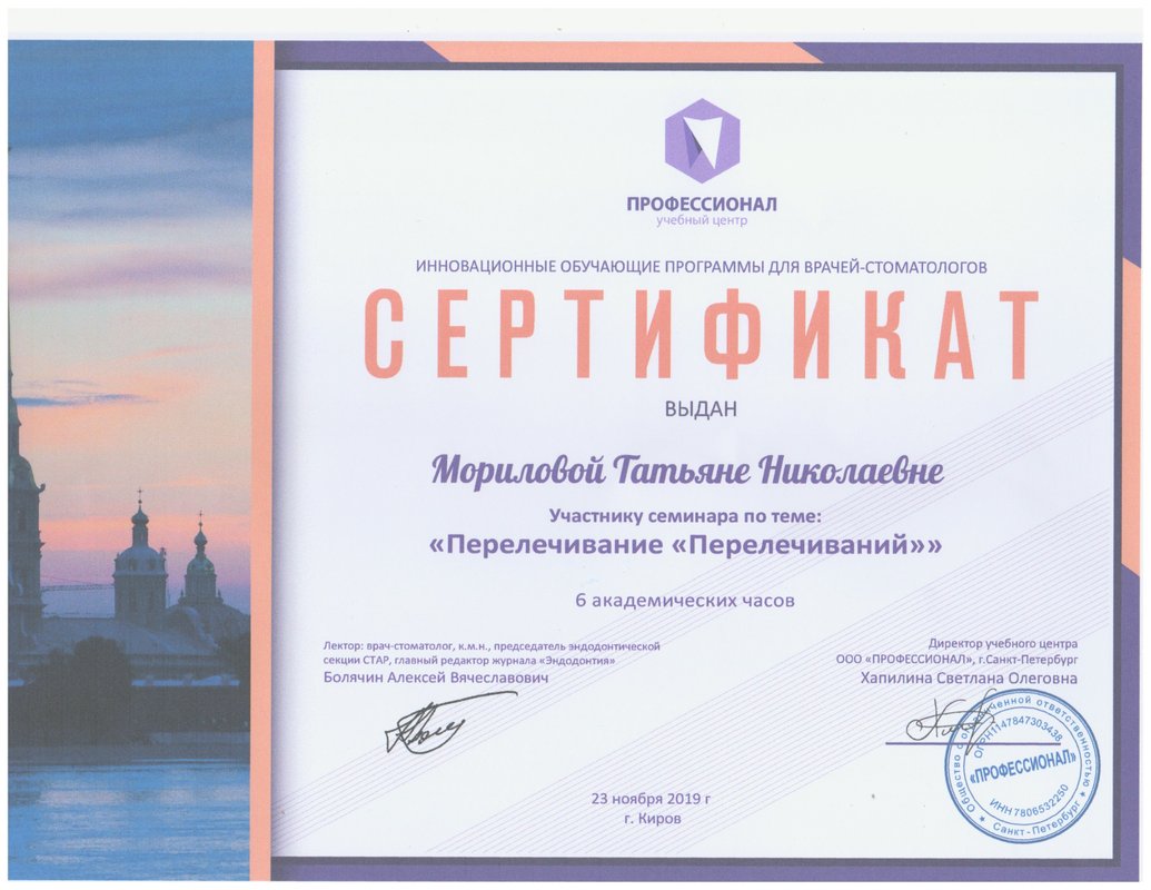 Мне понравилось внимательное отношение доктора Татьяны Николаевны Мориловой. В клинике отличное соотношение цены и качества услуг, приём по времени.
