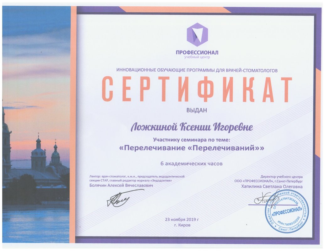 Клинику мне посоветовала моя коллега и к тому же она находится недалеко от дома. Хорошая клиника, чистая и аккуратная, доброжелательный персонал. Я была у двух докторов: Никита Сергеевич Куклин консультировал меня по дальнейшему протезированию и Ксения Игоревна Ложкина провела лечение зубов. Квалифицированные и грамотные специалисты, понравились своим профессионализмом и компетентностью. Я довольна, да и цены приемлемые. Буду продолжать дальше.